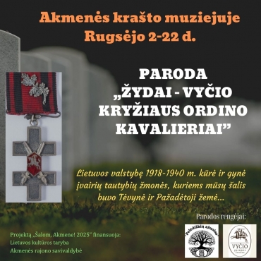 Įvairių tautybių žmonės prisidėjo kuriant Lietuvos valstybę 1918-1940 m. Gausi žydų bendruomenė dalyvavo tiek valstybės gynyboje, tiek valdyme. Nepriklausomybės atkūrimo kovose už jauną šalį kariavo žydai savanoriai, jos pamatus stiprino žydų tautybės politikai, verslininkai, gydytojai. Atskirus faktus surinkus į vieną vietą, atsiveria stulbinanti šių pastangų visuma. Ją į knygą „Pažadėtoji žemė – Lietuva“ sudėjo rašytojas, istorijos tyrinėtojas Vilius Kavaliauskas. Bendradarbiaujant su autoriumi, MB „Pelėdiškių ąžuolas“ parengė keliaujančią parodą apie aukščiausiu valstybiniu (kariniu) apdovanojimu – Vyčio kryžiumi – pagerbtus žydų tautybės asmenis.