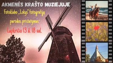 Net 60 įsimintinų nuotraukų, sustabdytų akimirkų įvairiose Lietuvos vietose, vakar atkeliavo į Akmenės krašto muziejų. Vieną gražiausių parodų šiais metais mums visiems dovanoja fotografų klubas „Lokys“, vienijantis daugiausiai Akmenės ir Mažeikių rajonų fotografijos meno mėgėjus ir profesionalus. Nuotraukose nesistengiama rodyti vien gražaus kraštovaizdžio, jose gausu būties kasdienybės momentų, užfiksuotų emocijų, judesio, senos architektūros bei gamtos dermės. Parodoje išvysite darbus, kuriais su meile dalijasi fotoklubo „Lokys“ nariai: Sigitas Kazlauskas, Jonas Vapsva, Mantas Kazlauskas, Osvaldas Balodis, Arūnas Dyglys, Loreta Kazlauskienė, Andrius Vasiliūnas, Tomas Trimailovas, Rimualdas Jurkevičius, Eduards Kapsa, Laimonas Urnikis, Algimantas Lūža, Jonas Lemežis, Elena Katkuvienė, Aušrinė Krenciūtė, Kazys Girdžiūnas, Petras Malūkas, Gvidas Taurinskas, Valdas Pumputis, Gediminas Girdenis, Albinas Vaišys, Deividas Makavičius, Nomeda Vėlavičienė, Vilija Jocienė, Alvydas Petrikas, Loreta Uščinienė, Ignas Vaičiulis, Rūta Ronkauskienė, Vytautas Raudonis, Aušra Petrauskienė, Ričardas Ringys.